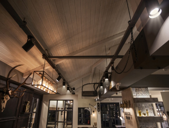 上榜理发店空间为了打造多个小环境,大量使用射灯来实现。较暗的空间内,不同小环境的高光,可以使得空间看起来更为高端。